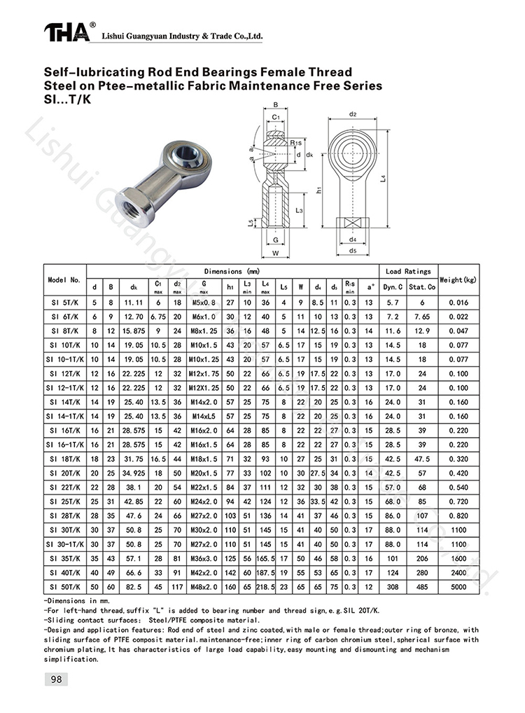 3. Rod ends permissible operating temperature, are available on - 30 °C to + 80 °C temperature range of use, and keep the right to bear ability.